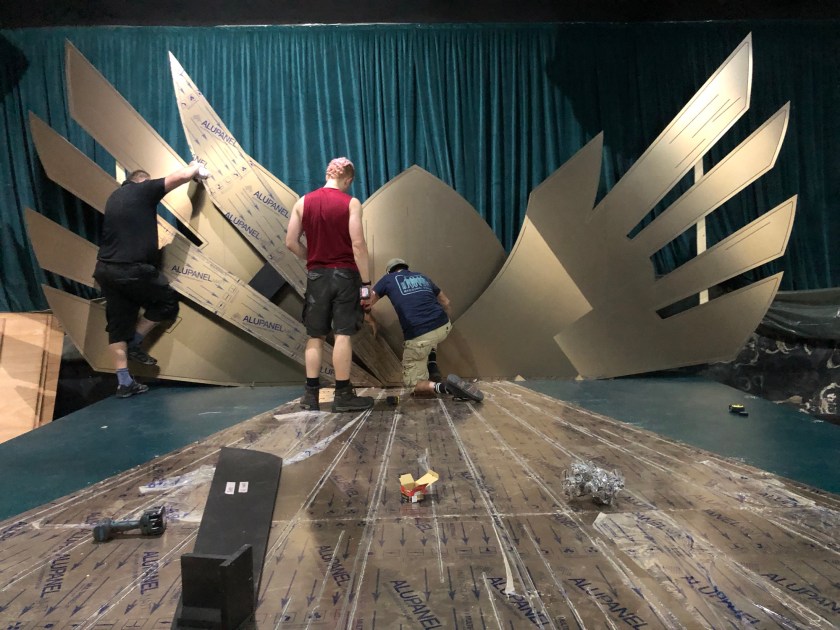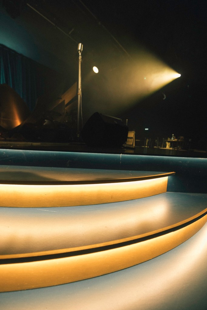 The space also had an additional requirement to transform on weekends, post-show to an ever-changing Cabaret space. The stage therefore had to feel both of the world and transform comfortably with light for a range of late-night shows.