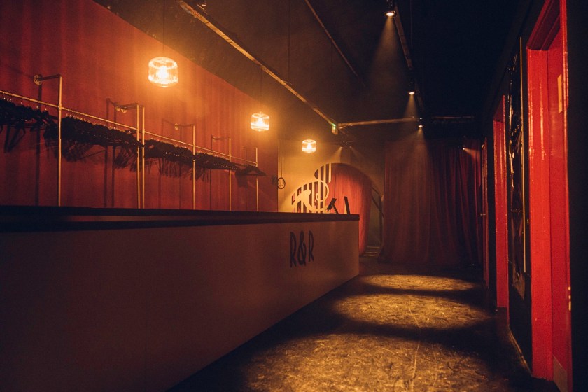 Production photos by Ben Morse – Entrance to Rhythm & Ruse, Cloakroom, Photo Op, Mirror Corridor & Red Corridor